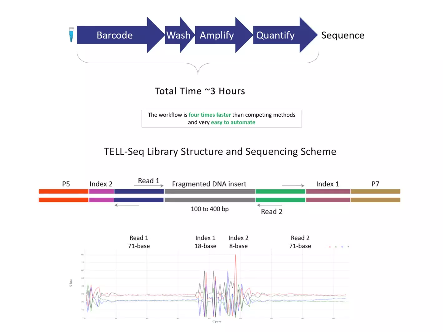 UST’s Transposase Enzyme-Linked Long-read Sequencing (TELL-Seq™) is a simple and scalable NGS library technology that generates barcode linked-reads for genome-scale or targeted sequencing applications. The whole procedure can be carried out in a PCR tube without the need for expensive instrumentation. The TELL-Seq™ Library Prep Kit will generate an Illumina sequencing library in just 3 hours. The protocol can be easily adjusted based on the genome or target size to be analyzed.