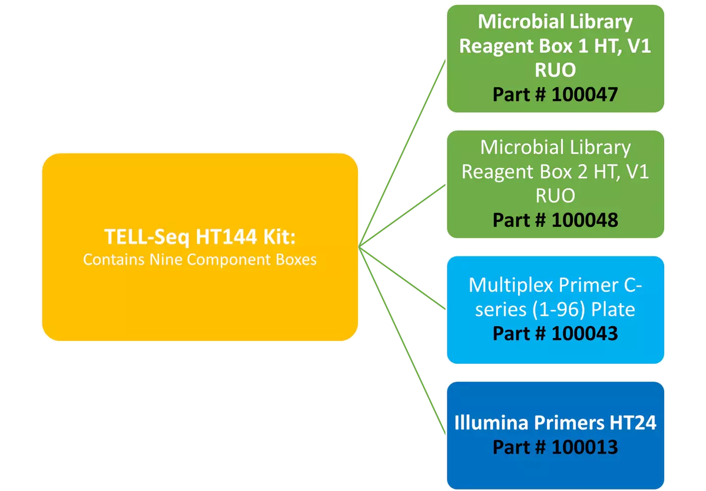 Microbial kit consisting of library preparation kit box 1 (HT), box 2 (HT), Illumina primer (HT24), and multiplexing primer set 1-96